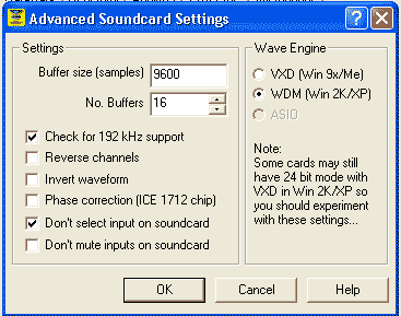 Справа радиобаттон - выбор WAV мотора, пробуйте по умолчанию, владельцы НТ машин при глюках пробуйте мотор от 98.