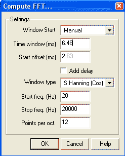 Так наглядней, правда. Начало окна у начала отклика, конец до первого отражения. Теперь если кликнуть правой кнопкой грызуна можно выбрать compute FFT, то вывалится такое окошко: