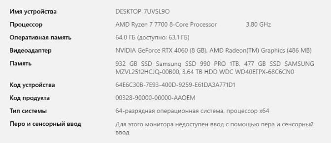 Накопитель: 1 TB NVMe SSD (Samsung 990 PRO или аналоги).