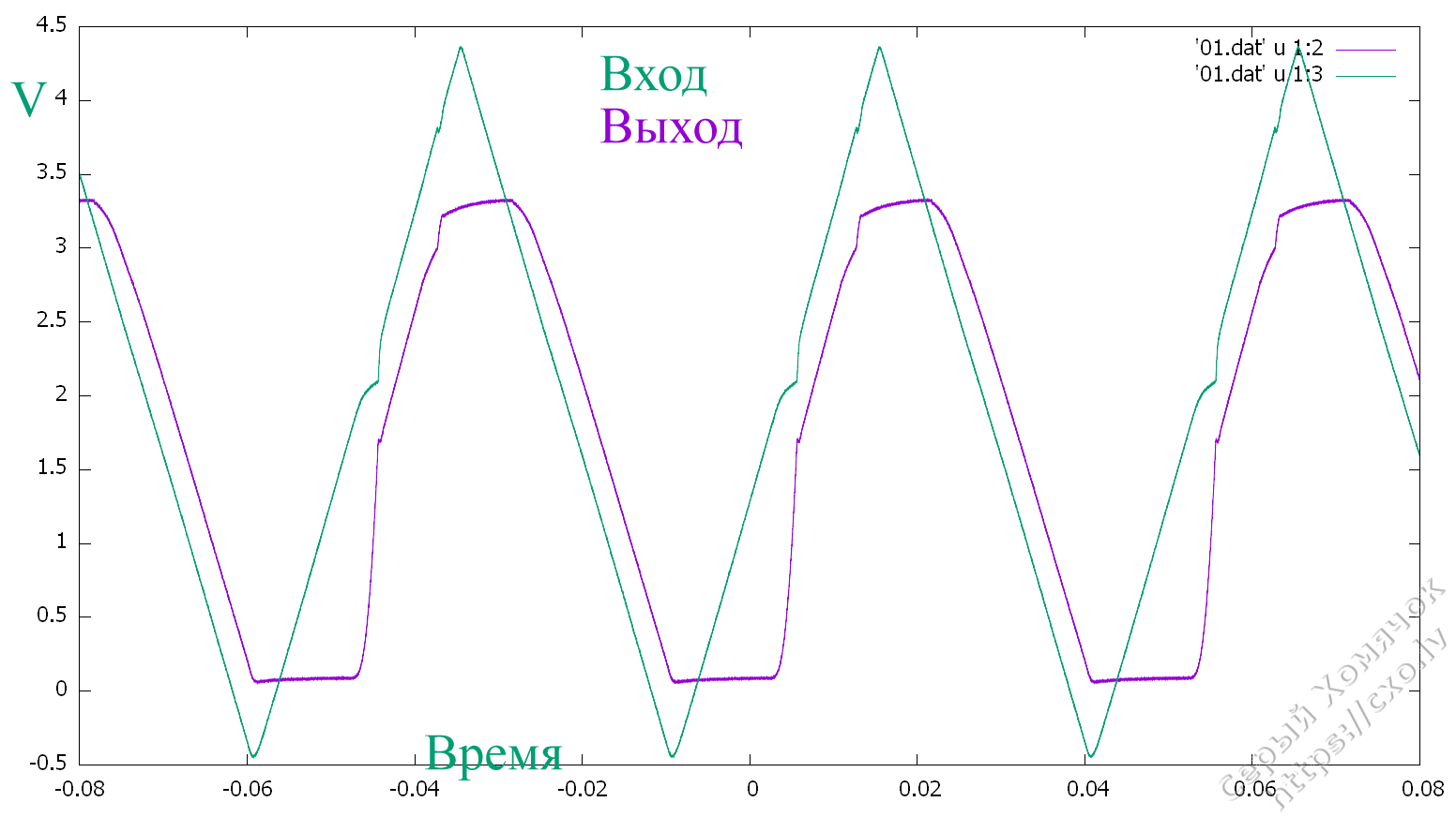 Ручки функциональник изумительно крутит, вот этот стаб снят риголоским скопом и график гнуплотом по сохраненным данным. Выходное функциональника 50 Ом.