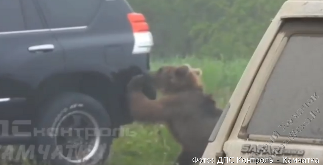 В Палане, рядом с аэропортом, косолапый устроил «краш-тест» внедорожнику. Медведь обошёл «Ленд Крузер», поцарапал кузов.